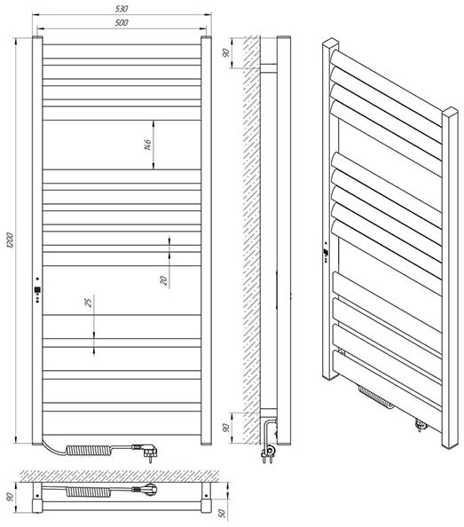 Полотенцесушитель Laris Лавина ЧФЧ13 500 х 1200 Електро Левое подключение (черный)